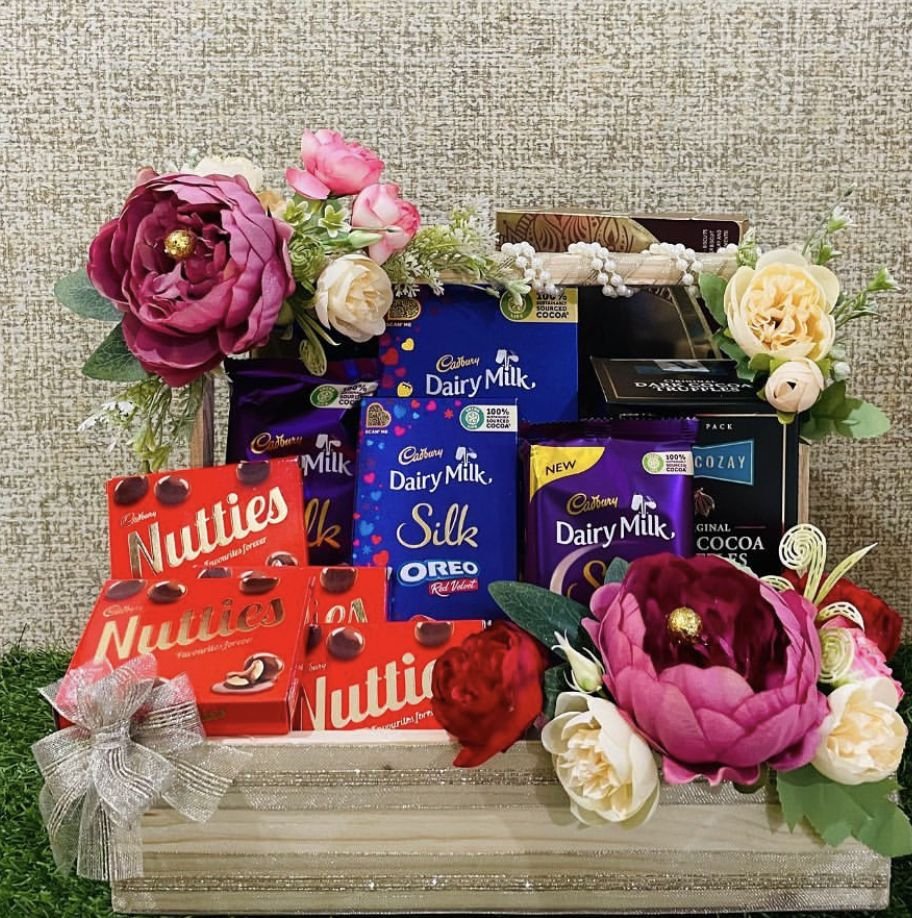 A chocolate-rich hamper with assorted chocolates & brownies.